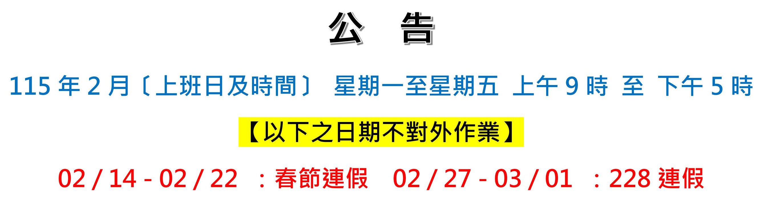 本會對外作業時間,為星期一至星期五,上午9時至下午17時。