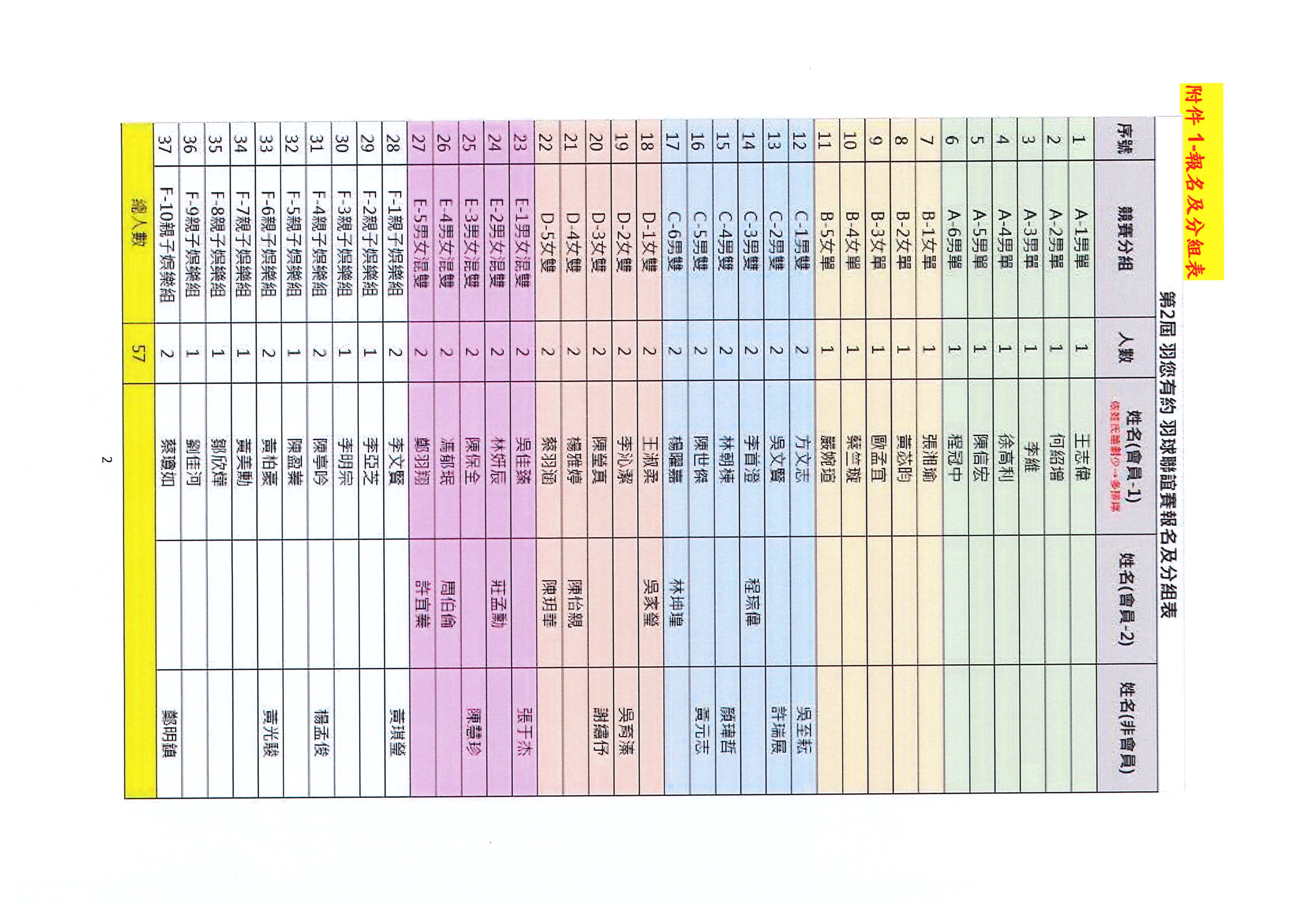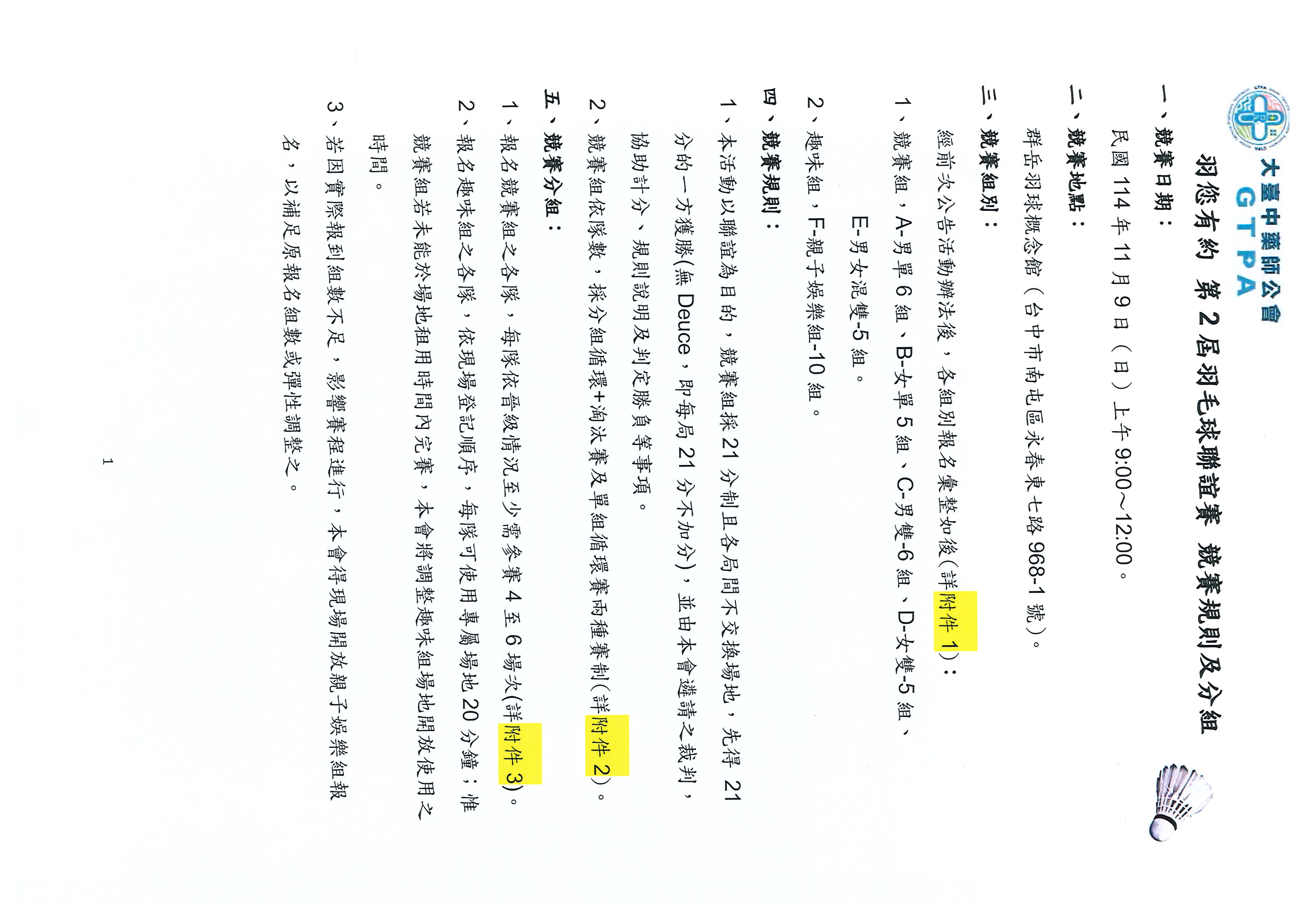 1141109羽您有約第2屆羽毛球聯誼賽活動辦法競賽規則及分組,請參閱。