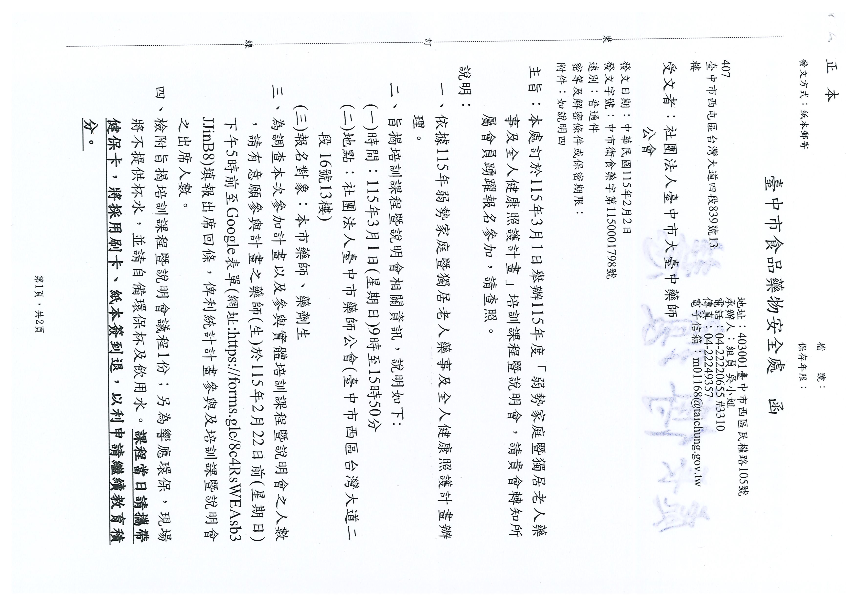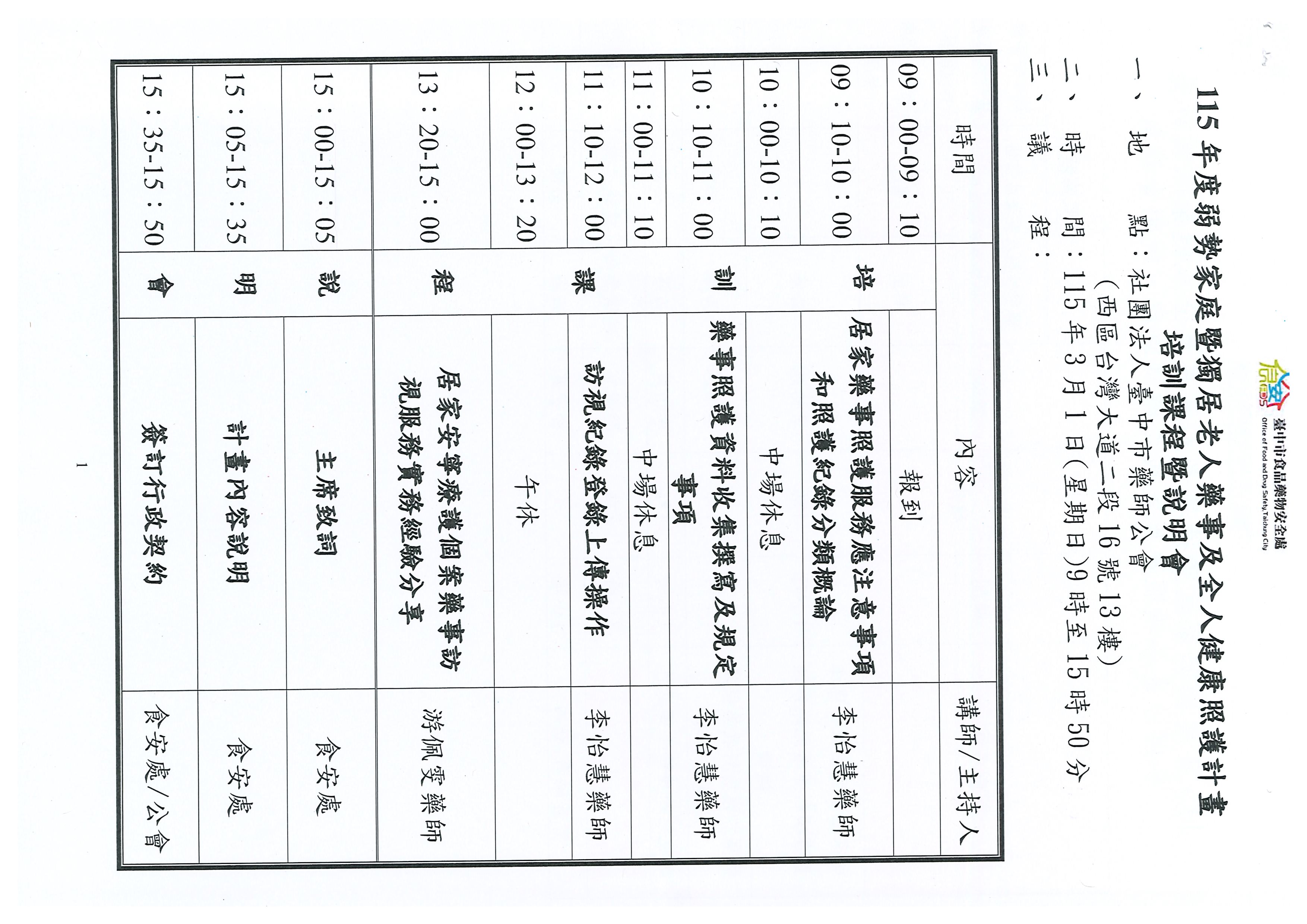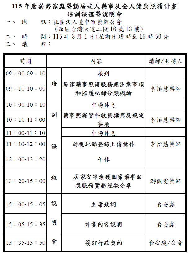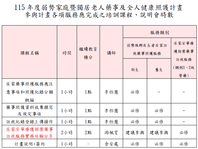115年「弱勢家庭暨獨居老人藥事及全人健康照護計畫」執行藥師報名 & 培訓課程暨說明會
