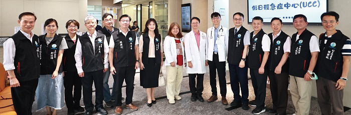 ↑UCC開辦首日大臺中藥師公會理事長謝永宏率領理監事及幹部前往據點關心視察。